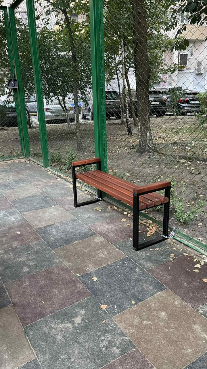 Основа лавки - міцний металевий профіль товщиною 1,8-2 мм. Розмір профілю 50х25 мм. Метал покритий чорною молотковою фарбою у 2-3 шари.