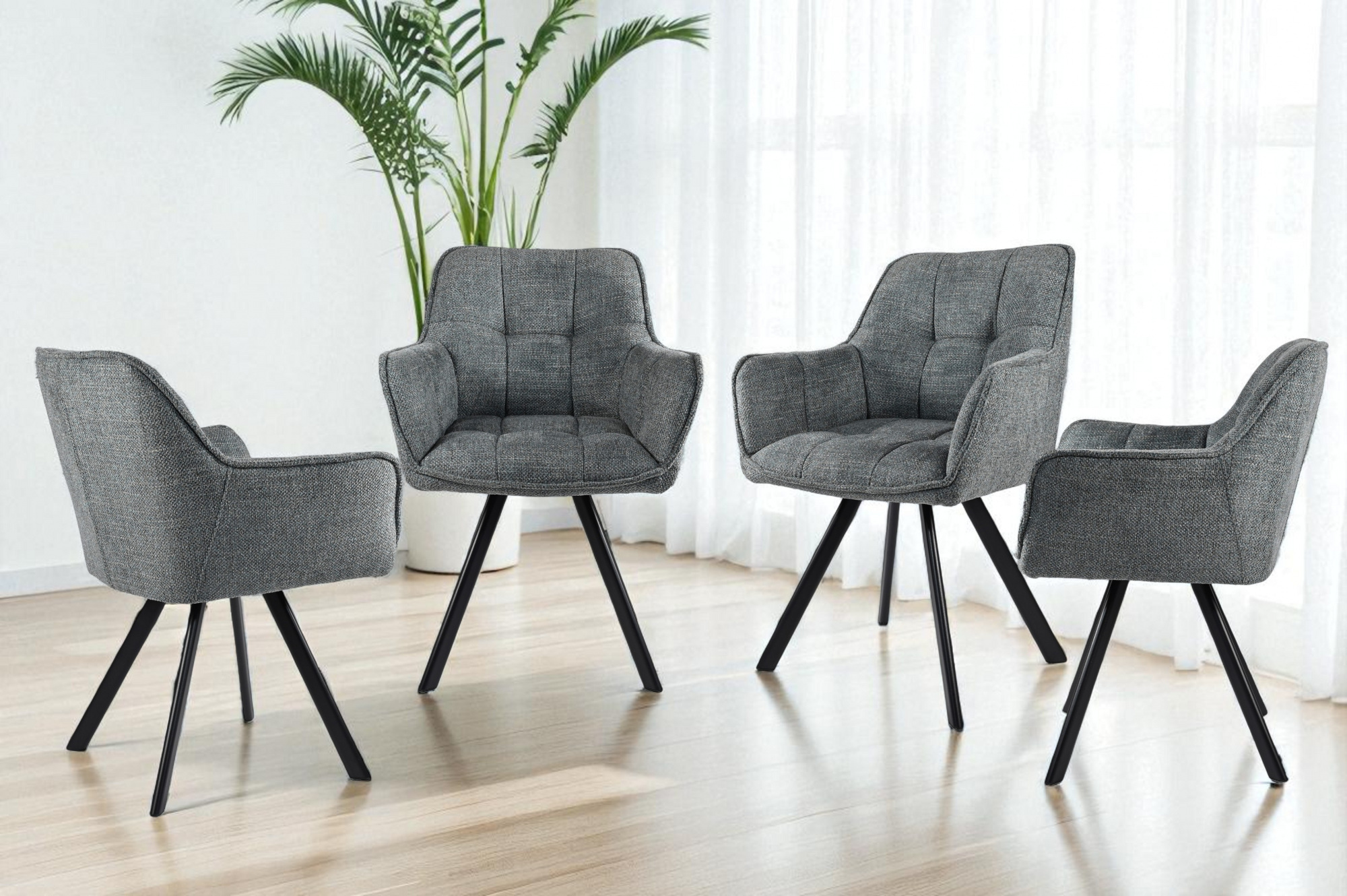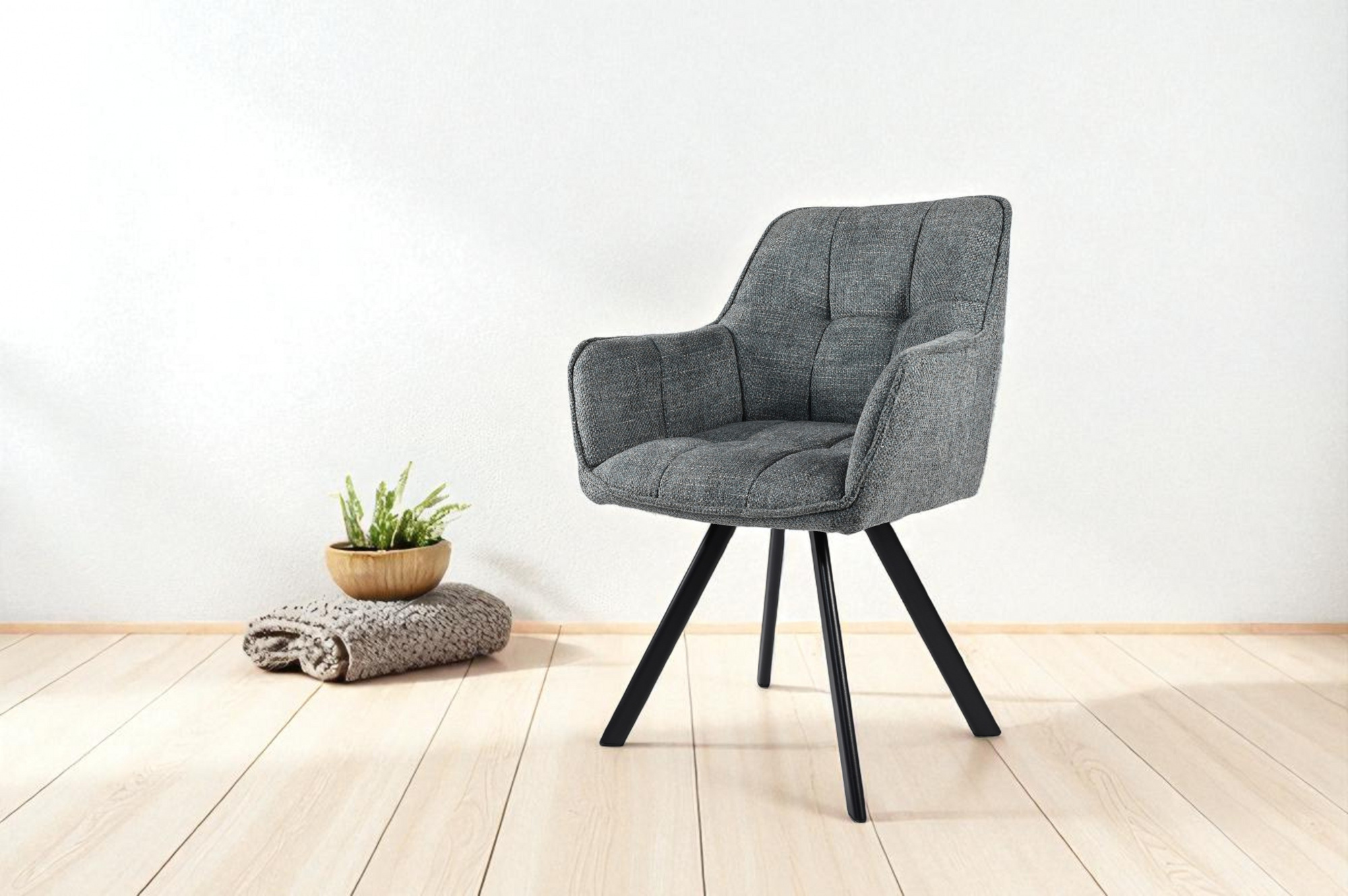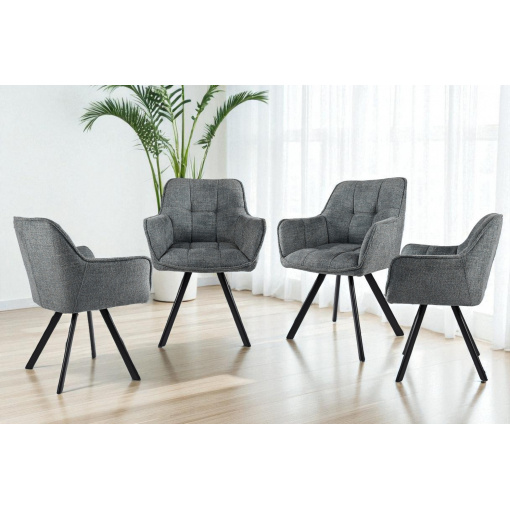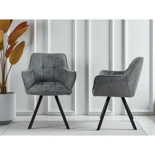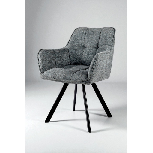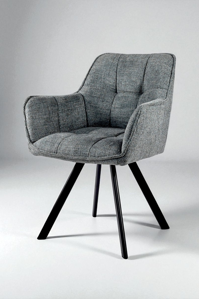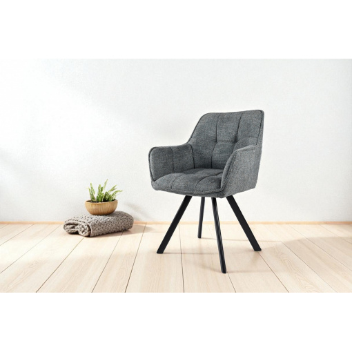 Стілець обідній з підлокітниками та спинкою Осло М-235, для кухні, їдальні, фактурна тканина Графіт/чорний, 850х600х610 мм