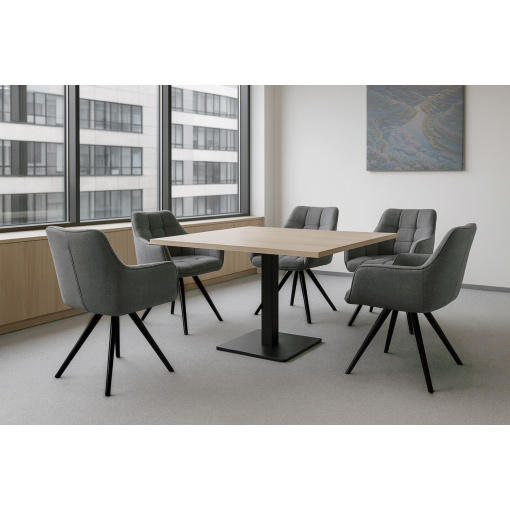 Широке сидіння та зручні підлокітники забезпечують комфорт навіть при триваломувикористанні. Металева фарбована основа додає тепла та гармонії загальному дизайну, створюючи стильний контраст із оббивкою. «Осло» чудово підійде для обідньої зони, вітальні, робочого кабінету або як елемент декору у зоні відпочинку.