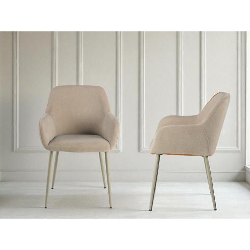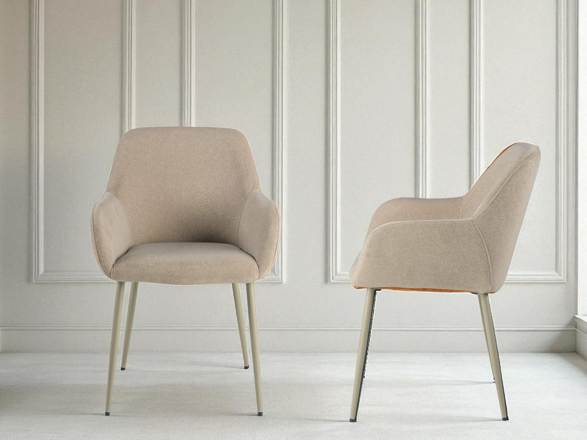 Стілець обідній з підлокітниками та спинкою Терра М-220, для кухні, їдальні, мохер Макадамія/капучино, 830х550х580 мм