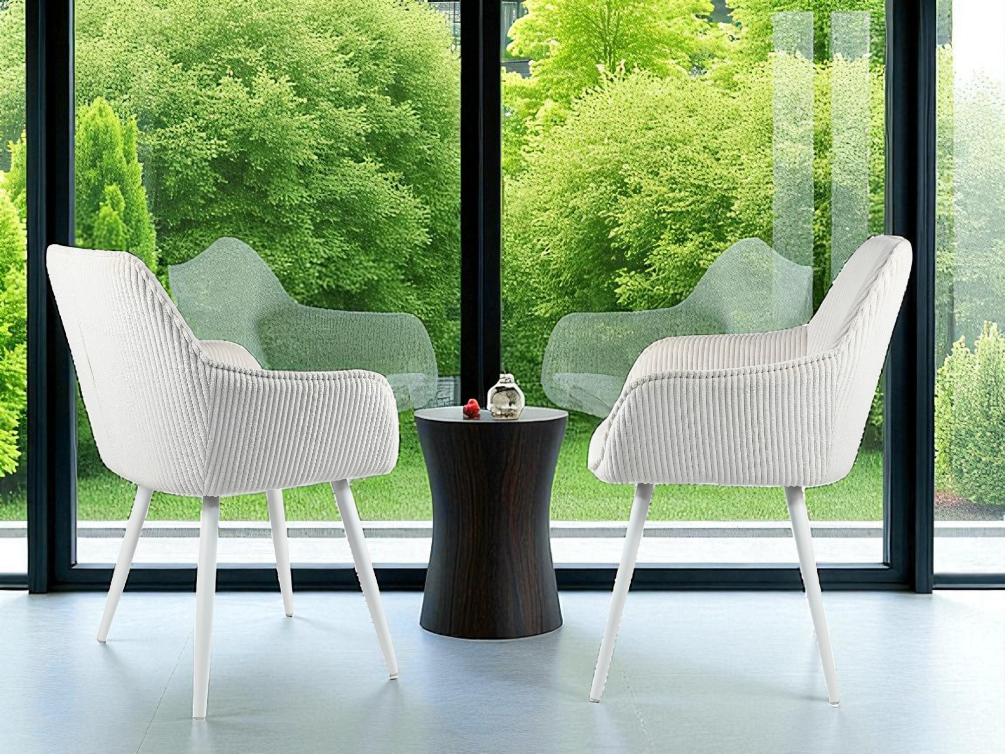 Стілець обідній зі спинкою Лінн М-240 з підлокітниками, для їдальні, кухні, кафе, салону, вельвет Білий антик/білий, 850х580х580 мм