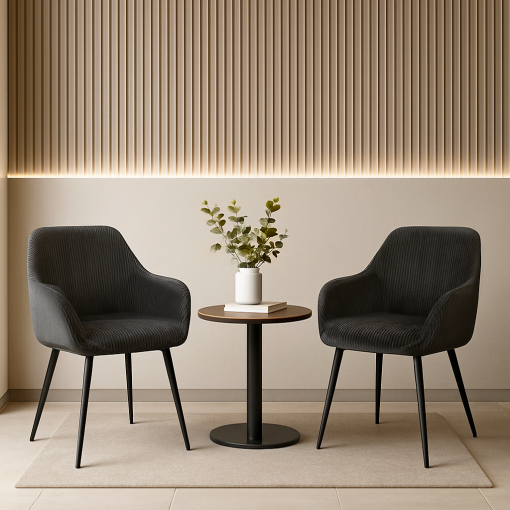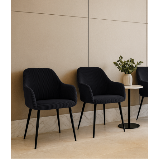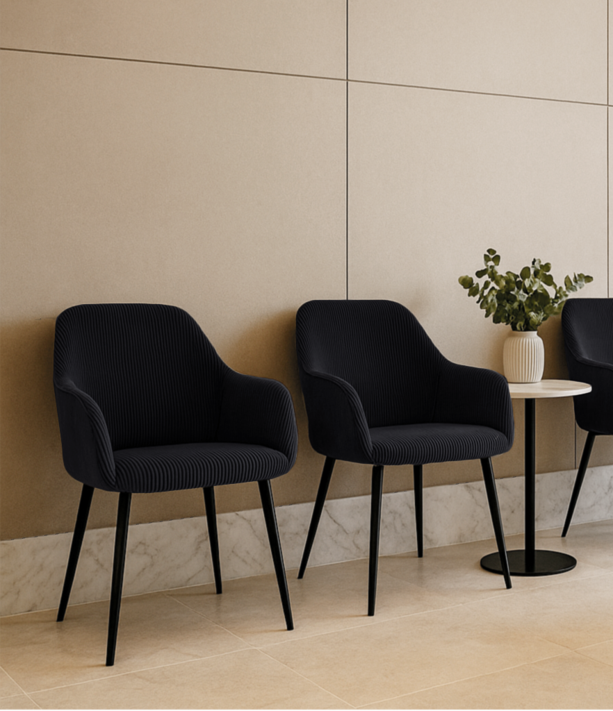 Стілець «Лінн» — це гармонійне поєднання витонченості та зручності, створене для тих, хто цінує комфорт і сучасний дизайн. Оббивка з вельвету «рубчик» у глибоких відтінках надає моделі розкішного вигляду, а приємна на дотик текстура додає інтер’єру тепла й затишку.
