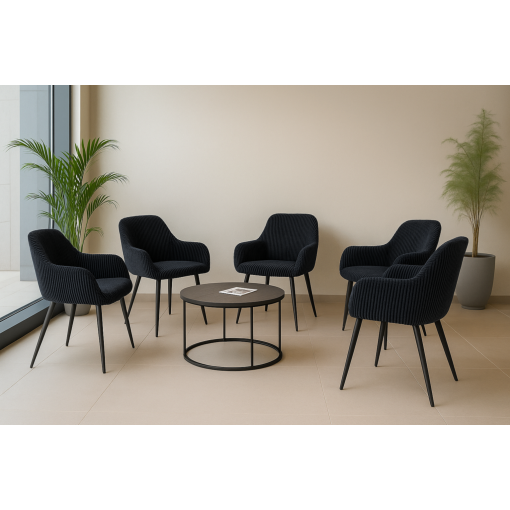Широке сидіння з м’яким наповнювачем і ергономічними підлокітниками забезпечує максимальний комфорт навіть під час тривалого сидіння. Металеві ніжки додають стійкості та підкреслюють сучасний характер моделі.
