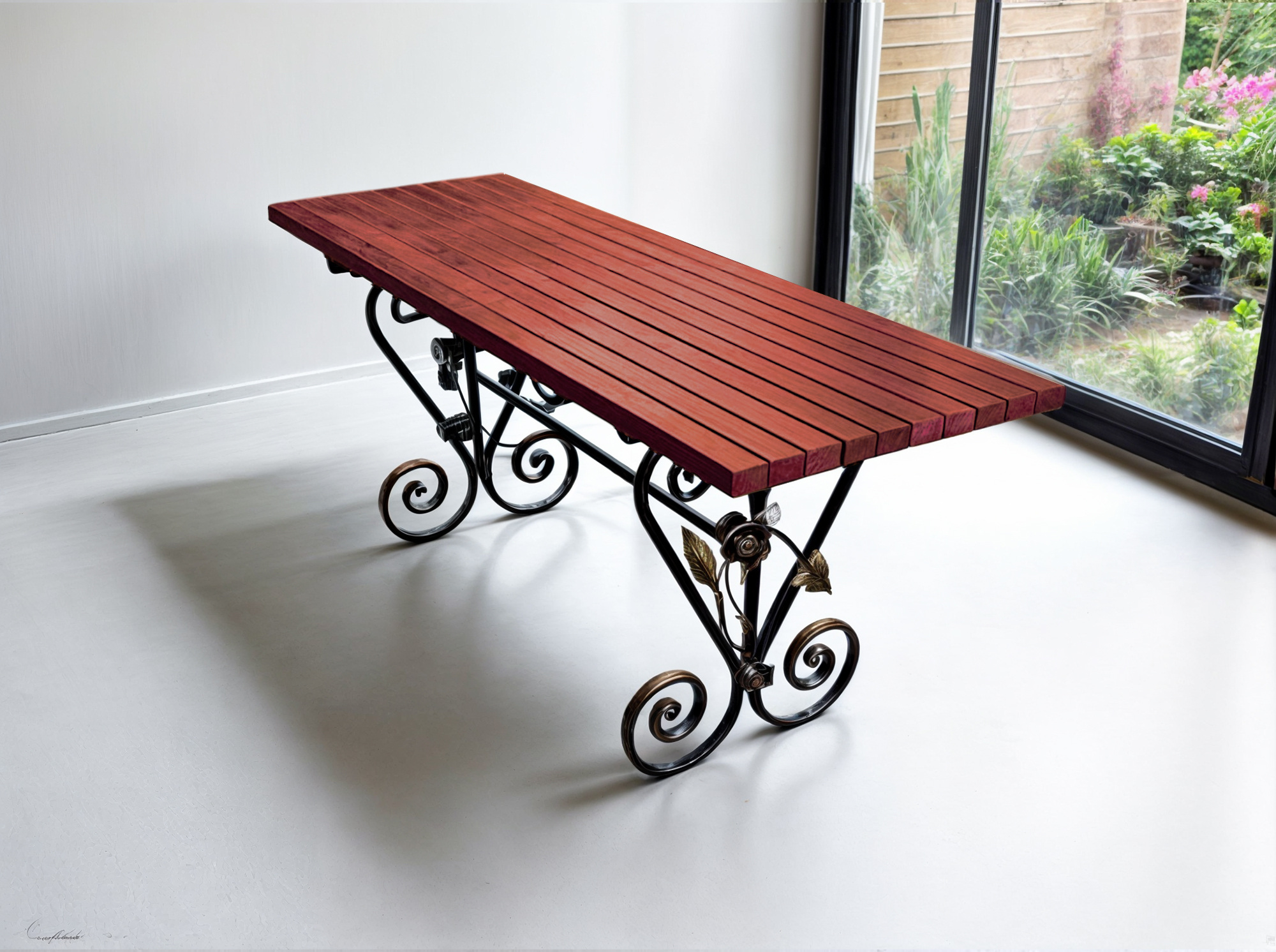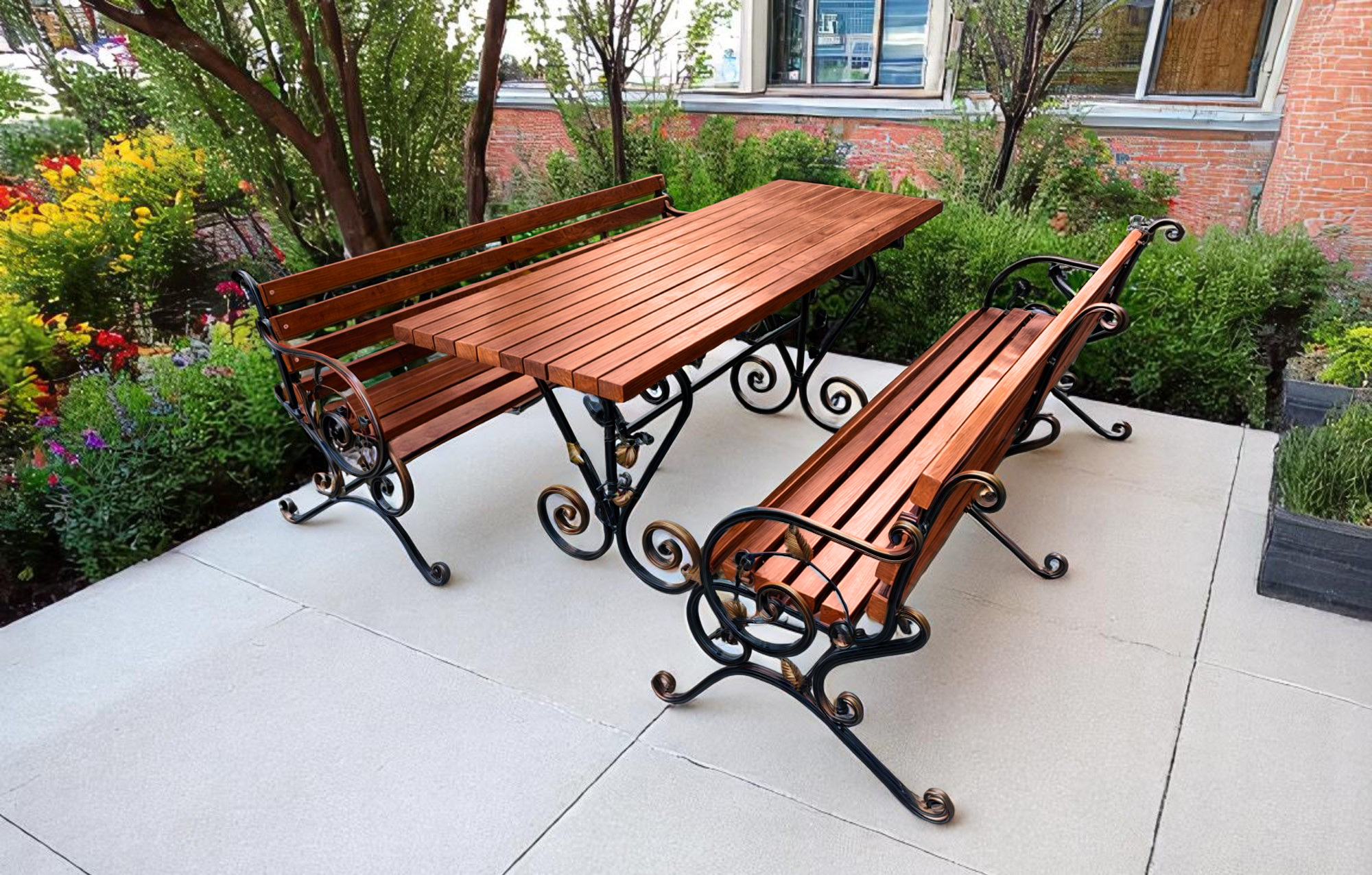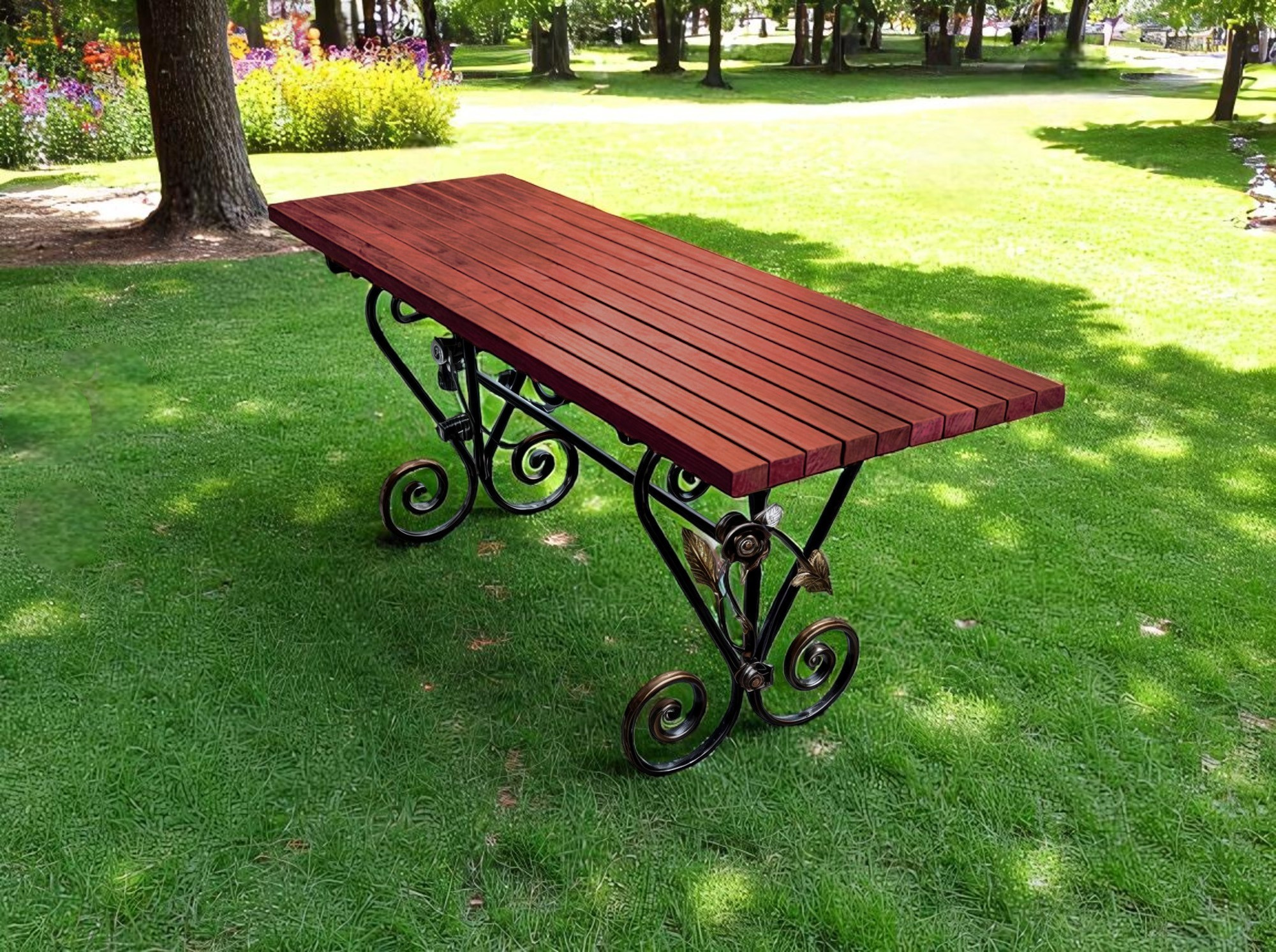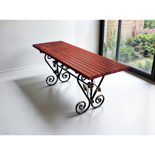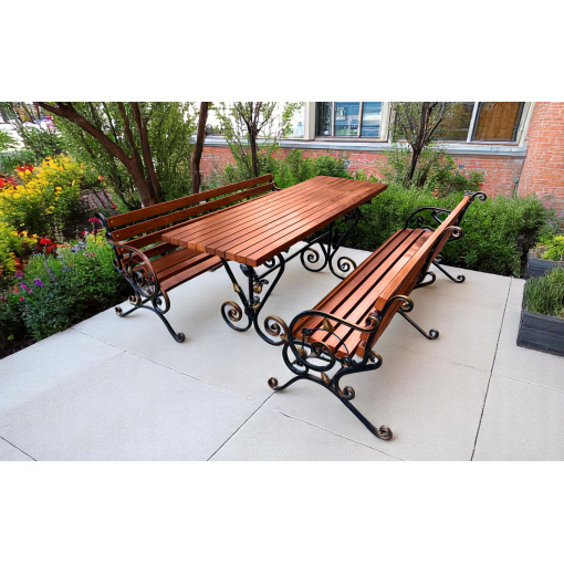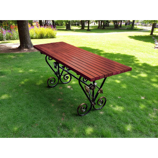 Стіл «Камелія» — гармонія кованого мистецтва та сучасної практичності. Витончені завитки й квіткові елементи на металевій основі додають йому шарму, а лаконічна стільниця підкреслює стильний характер виробу. Такий стіл стане не просто меблями, а справжньою прикрасою вашої тераси, альтанки чи садової зони. Надійний, естетичний і створений, щоб тішити око кожного дня.