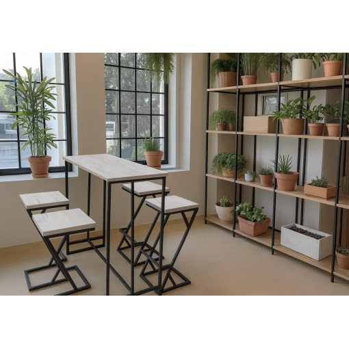 Барний столик «Шарм» у стилі лофт — елегантне та практичне рішення для барів, кафе та домашніх зон відпочинку. Цей столик поєднує сучасний дизайн та надійну конструкцію. Лаконічна форма, стільниця з ЛДСП та міцний металевий каркас роблять його ідеальним для активного використання.