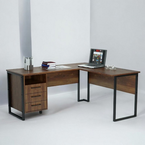 Стіл кутовий офісний Tobi Sho LOFT Volcano СУЛВ/3-1 з 3 шухлядами стільниця 18 мм, 1600х1400х750 Фаєрвуд