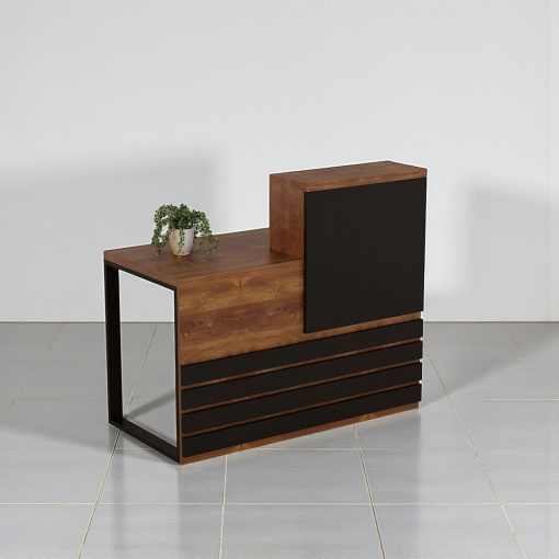 Стійка адміністратора Tobi Sho Ресепшн/5 лівостороння для офісу, салону, 1200х636х1090 Фаєрвуд/Чорний