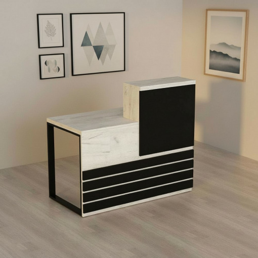 Стойка администратора Tobi Sho Ресепшн/5 левосторонняя для офиса, салона, 1400х636х1090 Дуб крафт белый/Черный