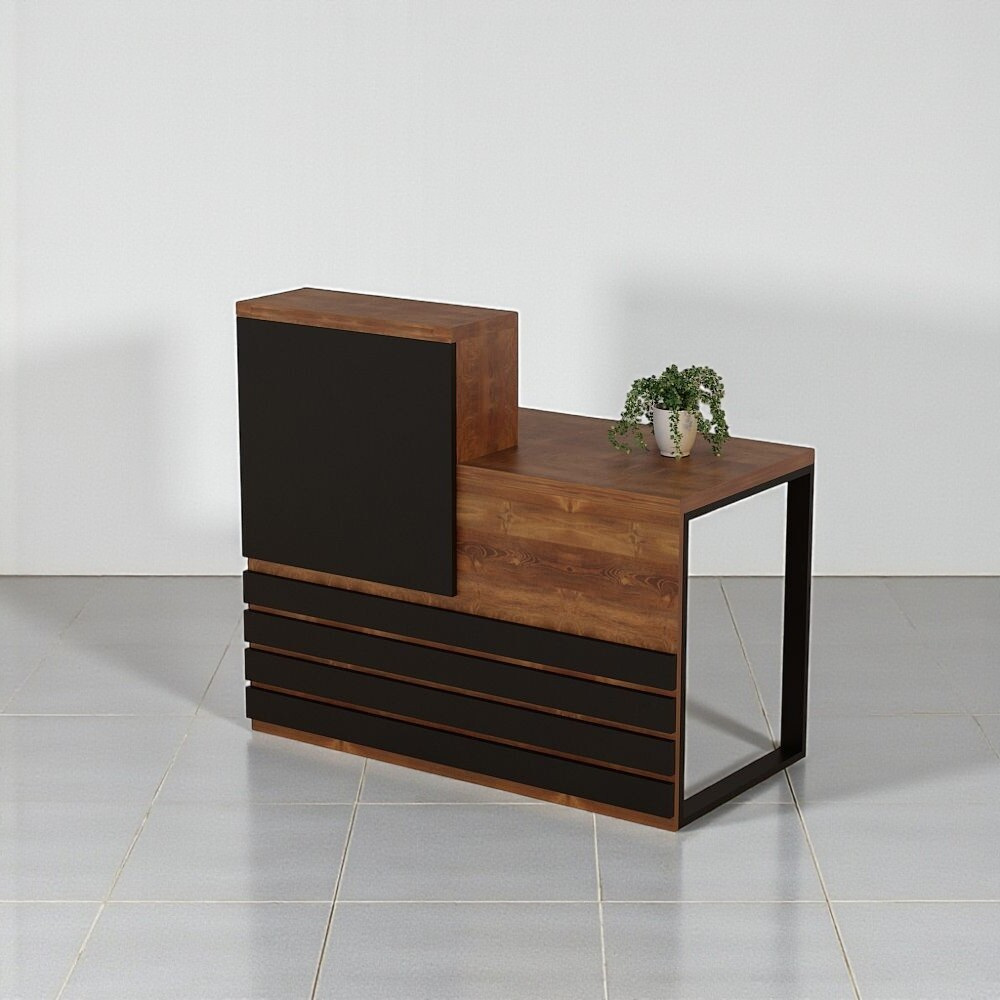 Стійка адміністратора Tobi Sho Ресепшн/5 правостороння для офісу, салону, 1400х636х1090 Фаєрвуд/Чорний