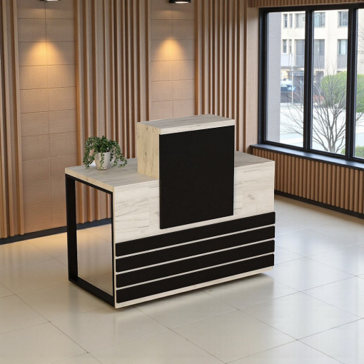 Стійка адміністратора Tobi Sho Ресепшн/5 центральна для офісу, салону, 1200х636х1090 Дуб крафт білий/Чорний