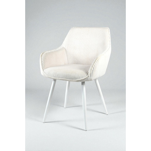Стул обеденный Линн М-240 с подлокотниками, для столовой, кухни, кафе, салона, вельвет Белый антик/белый, 850х580х580 мм