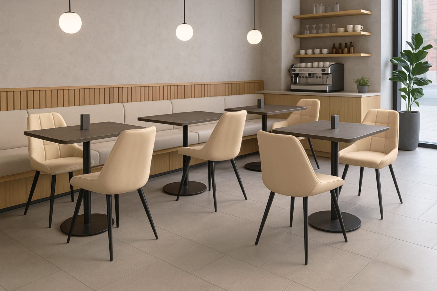 •    Современный дизайн — универсальный вариант для кухни, столовой или офиса