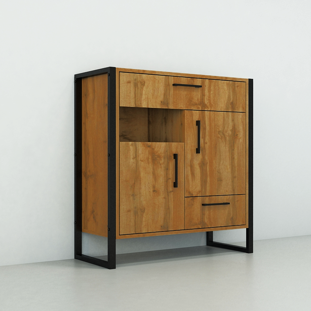 Тумбы для прихожей в стиле лофт — это практичное и стильное решение для обустройства коридора в квартире, доме или офисе. Сочетание ЛДСП с натуральной древесной текстурой и черного металлического каркаса создает современный индустриальный вид и делает тумбу в прихожую выразительным элементом интерьера.