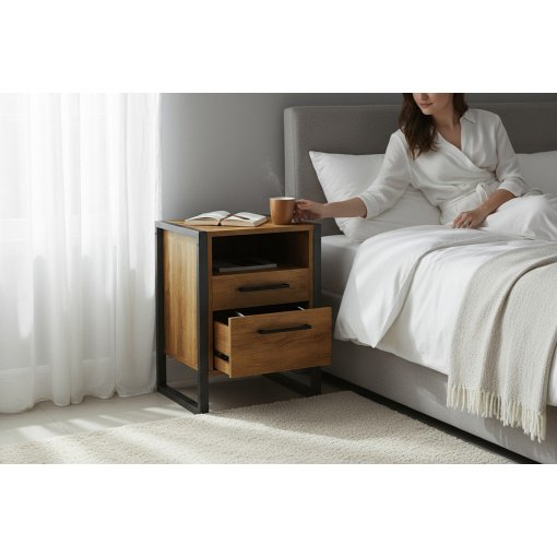 Тумби для передпокою у стилі лофт — це практичне та стильне рішення для облаштування коридору в квартирі, будинку чи офісі. Поєднання ЛДСП з натуральною деревною текстурою та чорного металевого каркаса створює сучасний індустріальний вигляд і робить тумбу в передпокій виразним елементом інтер’єру.