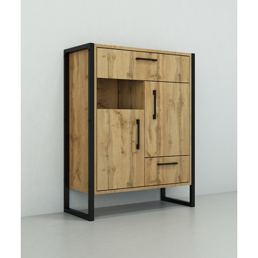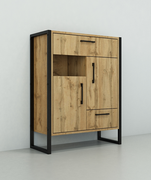 Тумбы для прихожей в стиле лофт — это практичное и стильное решение для обустройства коридора в квартире, доме или офисе. Сочетание ЛДСП с натуральной древесной текстурой и черного металлического каркаса создает современный индустриальный вид и делает тумбу в прихожую выразительным элементом интерьера.
