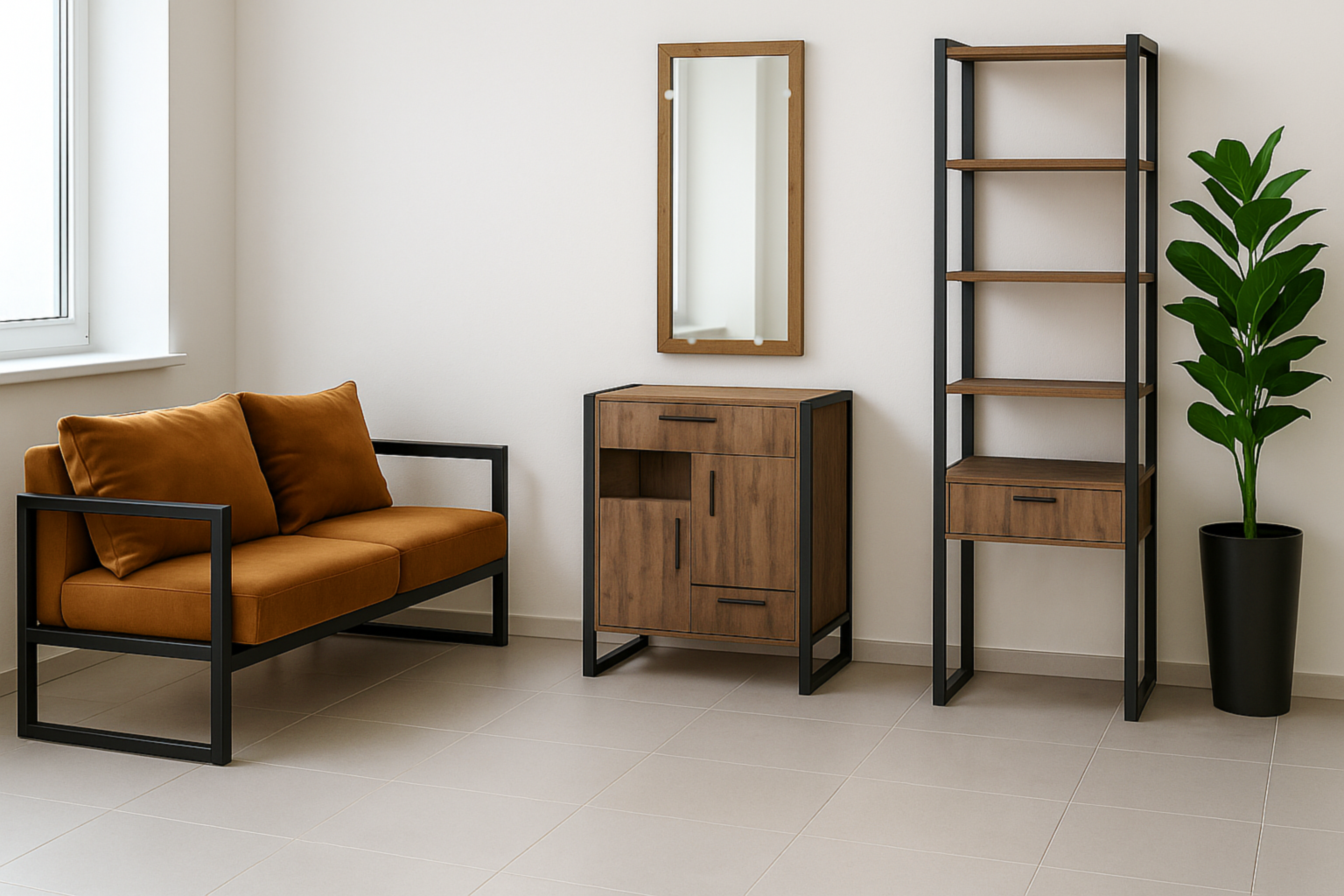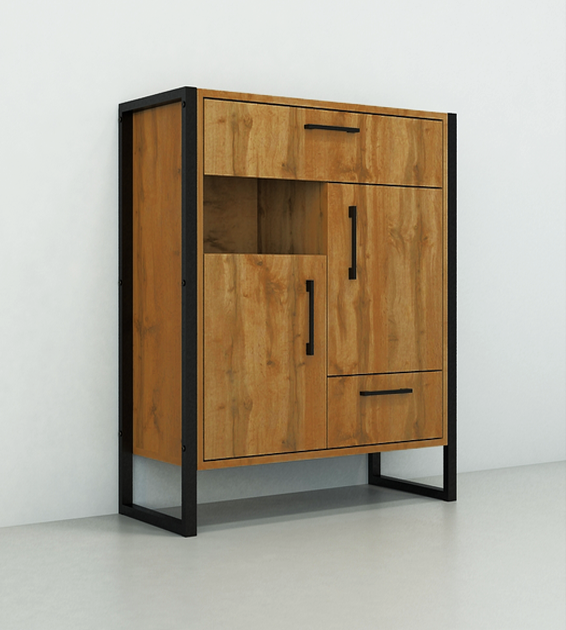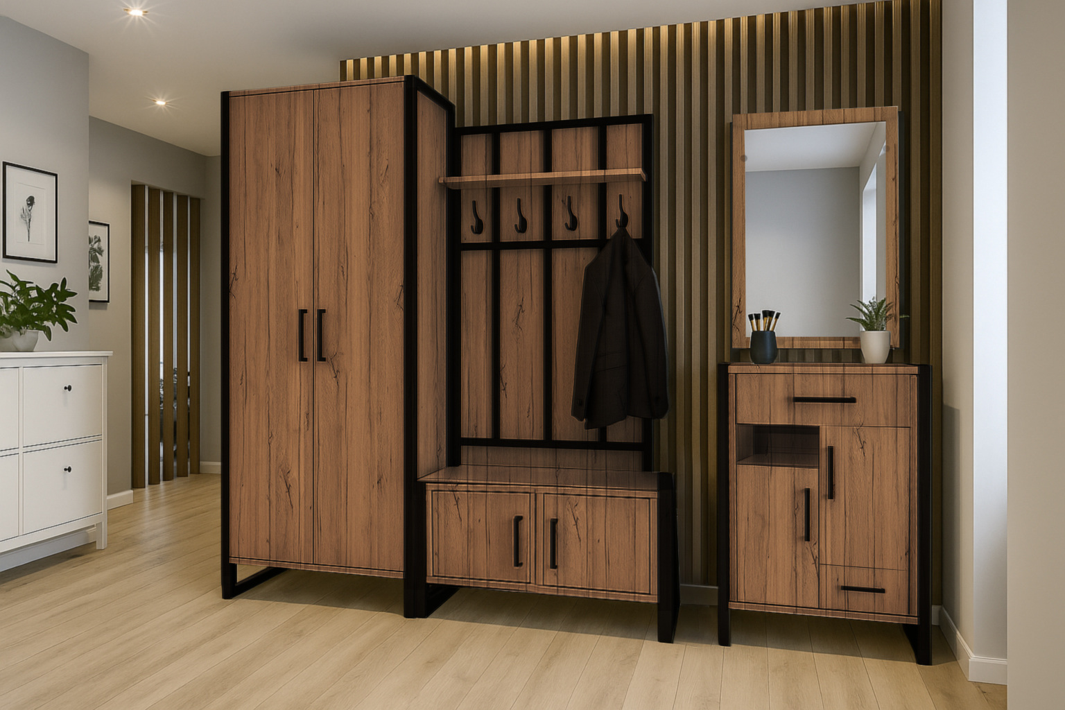 Тумби для передпокою у стилі лофт — це практичне та стильне рішення для облаштування коридору в квартирі, будинку чи офісі. Поєднання ЛДСП з натуральною деревною текстурою та чорного металевого каркаса створює сучасний індустріальний вигляд і робить тумбу в передпокій виразним елементом інтер’єру.