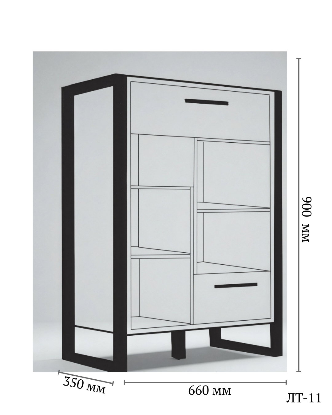 Тумба для передпокою Tobi Sho Норд ЛТ-11 у стилі Лофт з шухлядами і дверцятами, 660х350х900 мм Файєрвуд
