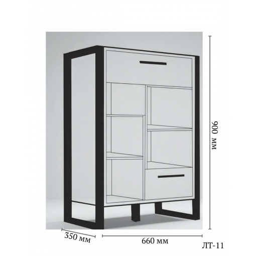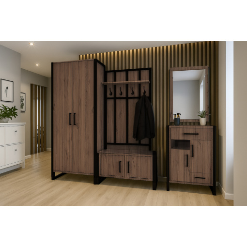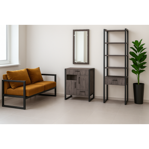 Функціональна конструкція дозволяє зручно зберігати речі та аксесуари, підтримуючи порядок у щоденному користуванні. Тумба для передпокою у стилі лофт підходить як для невеликих, так і для просторих коридорів та легко поєднується з іншими меблями для передпокою.