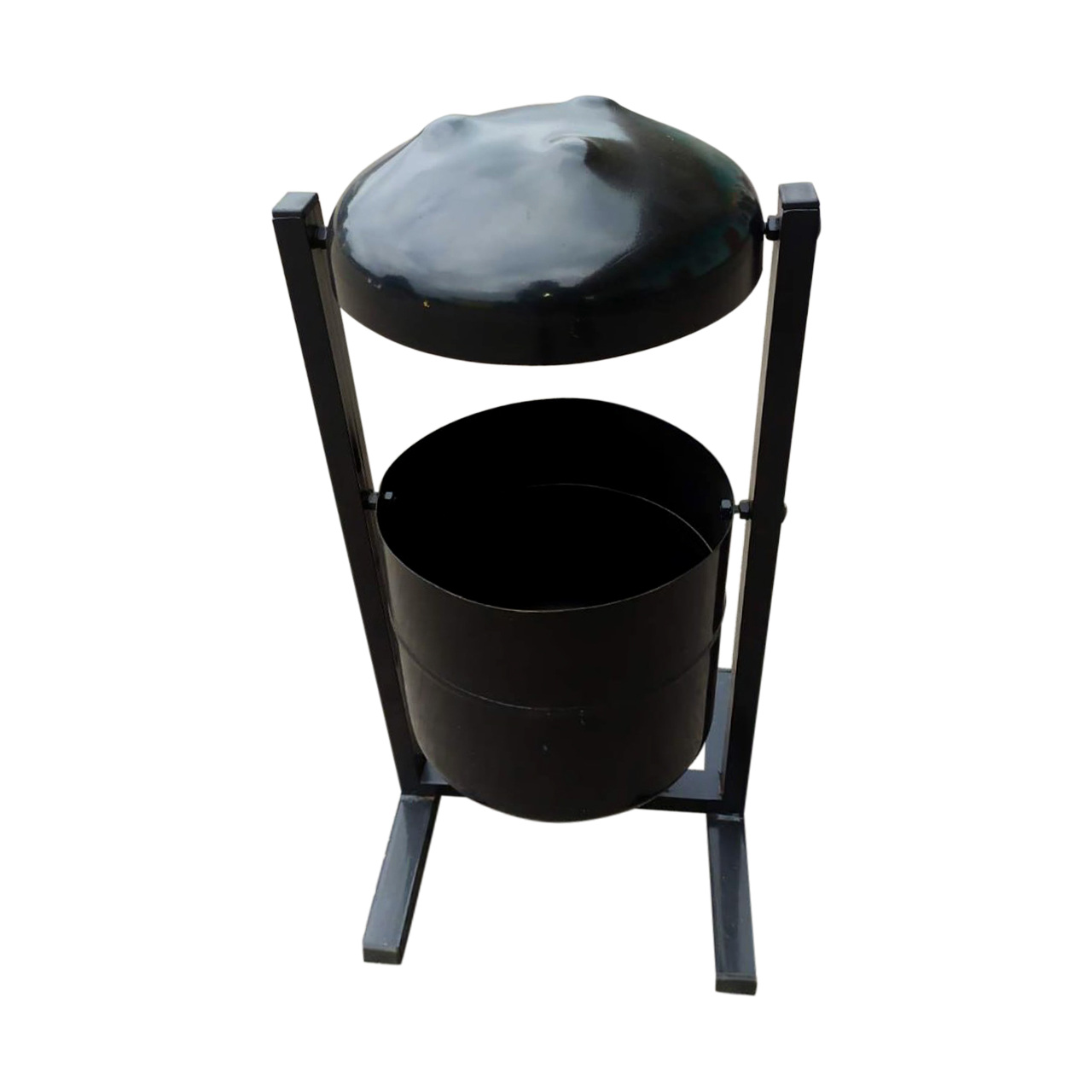 Представлена модель урни виготовлена із міцного металу, що забезпечує виробу довговічність та стійкість до зовнішніх впливів. Урна забарвлена чорною високоякісною фарбою. Товщина металу 1 мм.