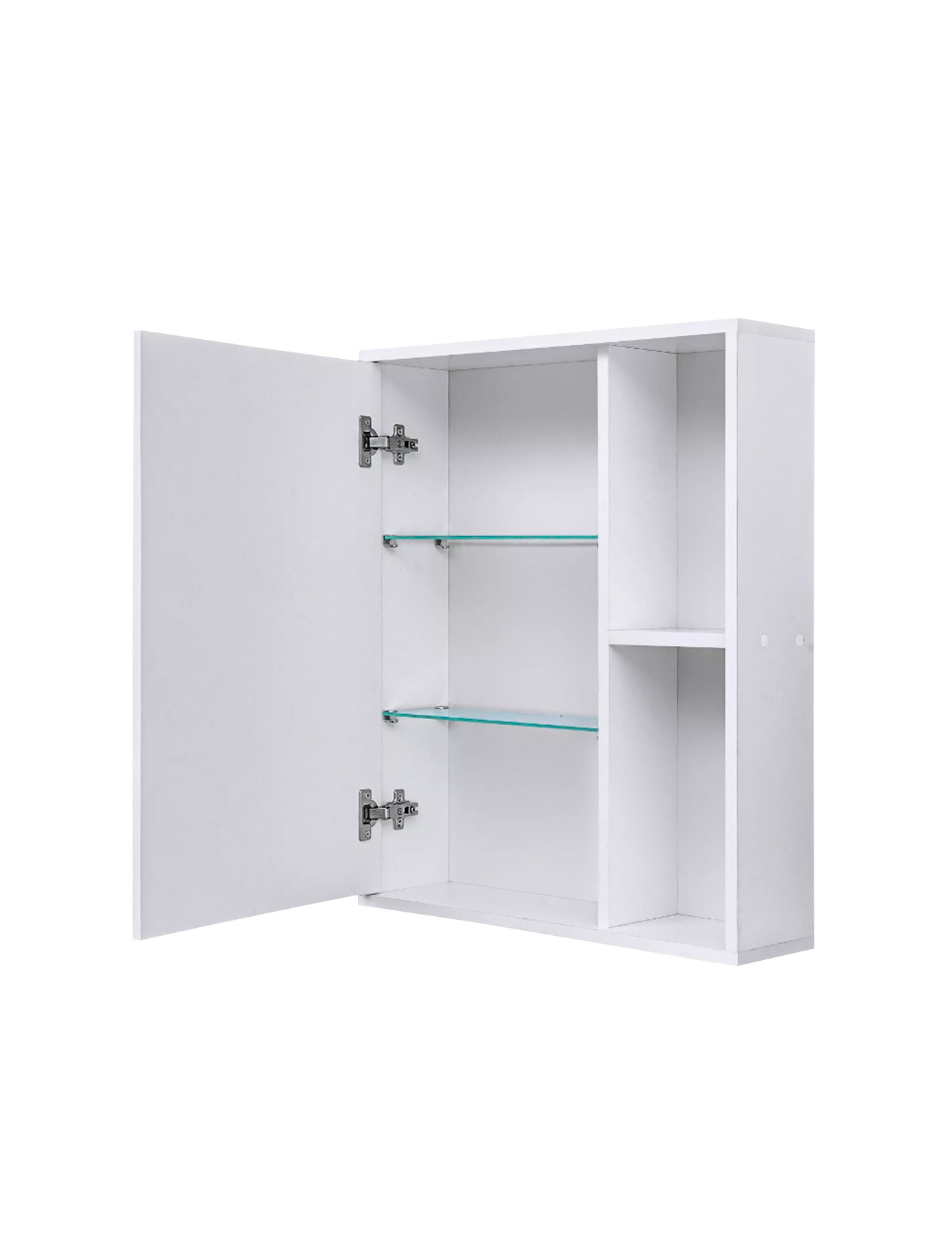 Усередині шафи розташовані скляні полиці завтовшки 4 мм. Відкриті бічні полиці виконані із ДСП товщиною 16 мм.