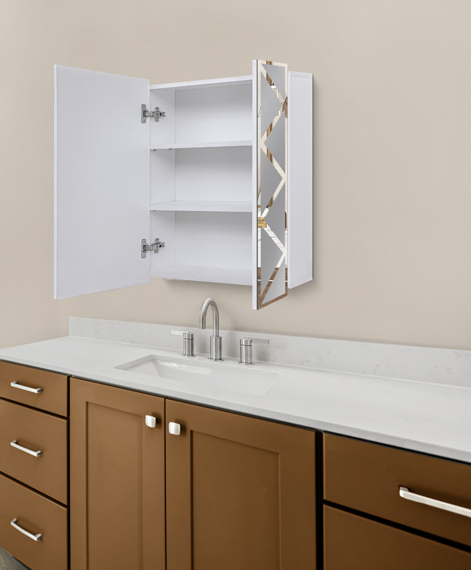 Дзеркальна навісна шафа у ванну кімнату TR7-60 700х600х145 мм з малюнком трикутники