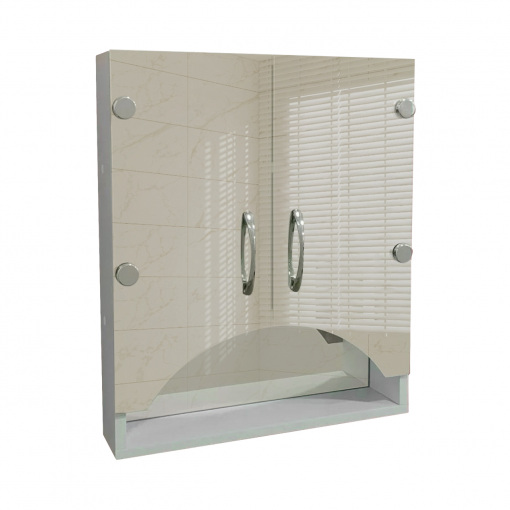 Фасад виготовлений із вологостійкого дзеркального полотна. Петлі та ручки врізані в саме полотно.