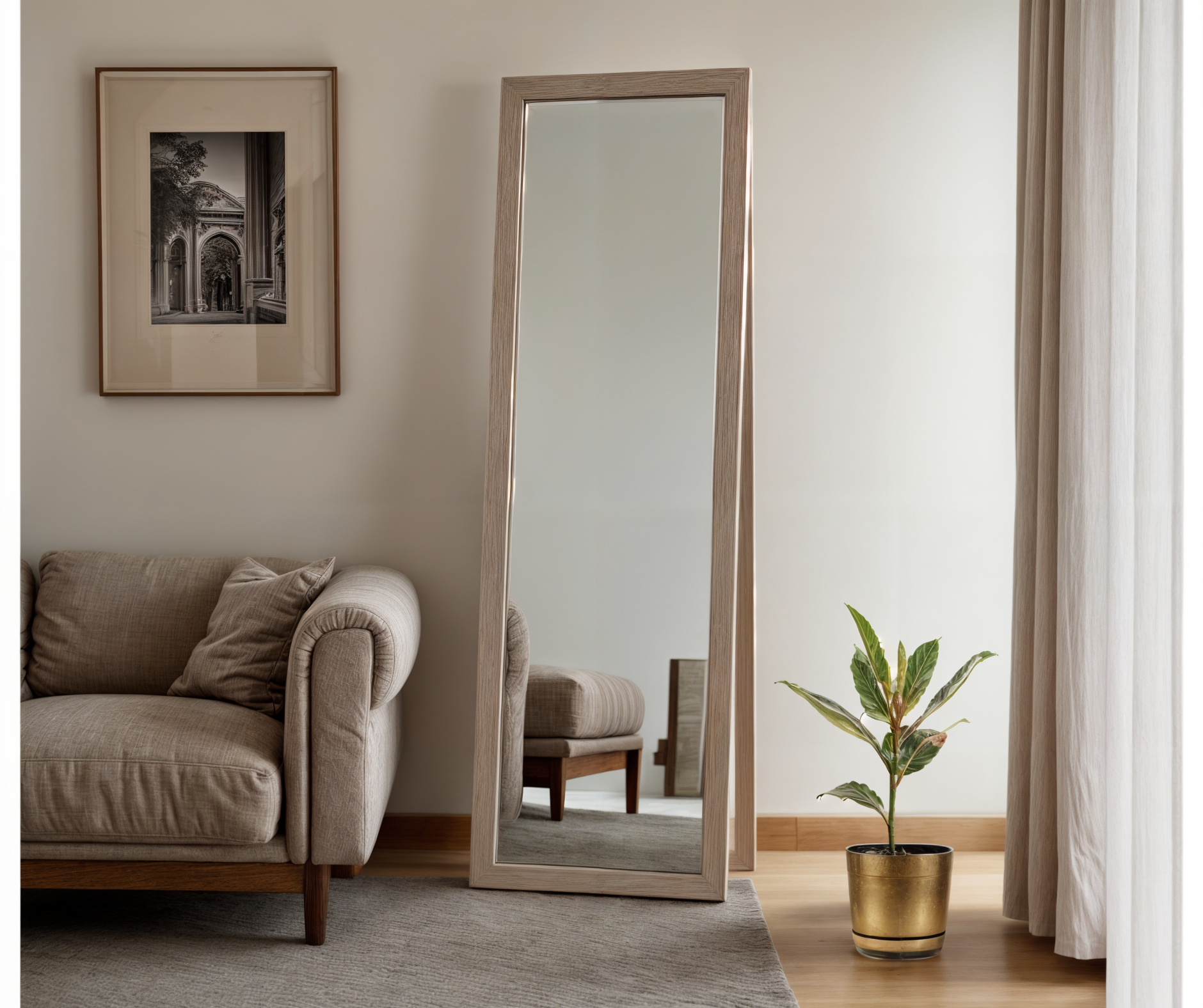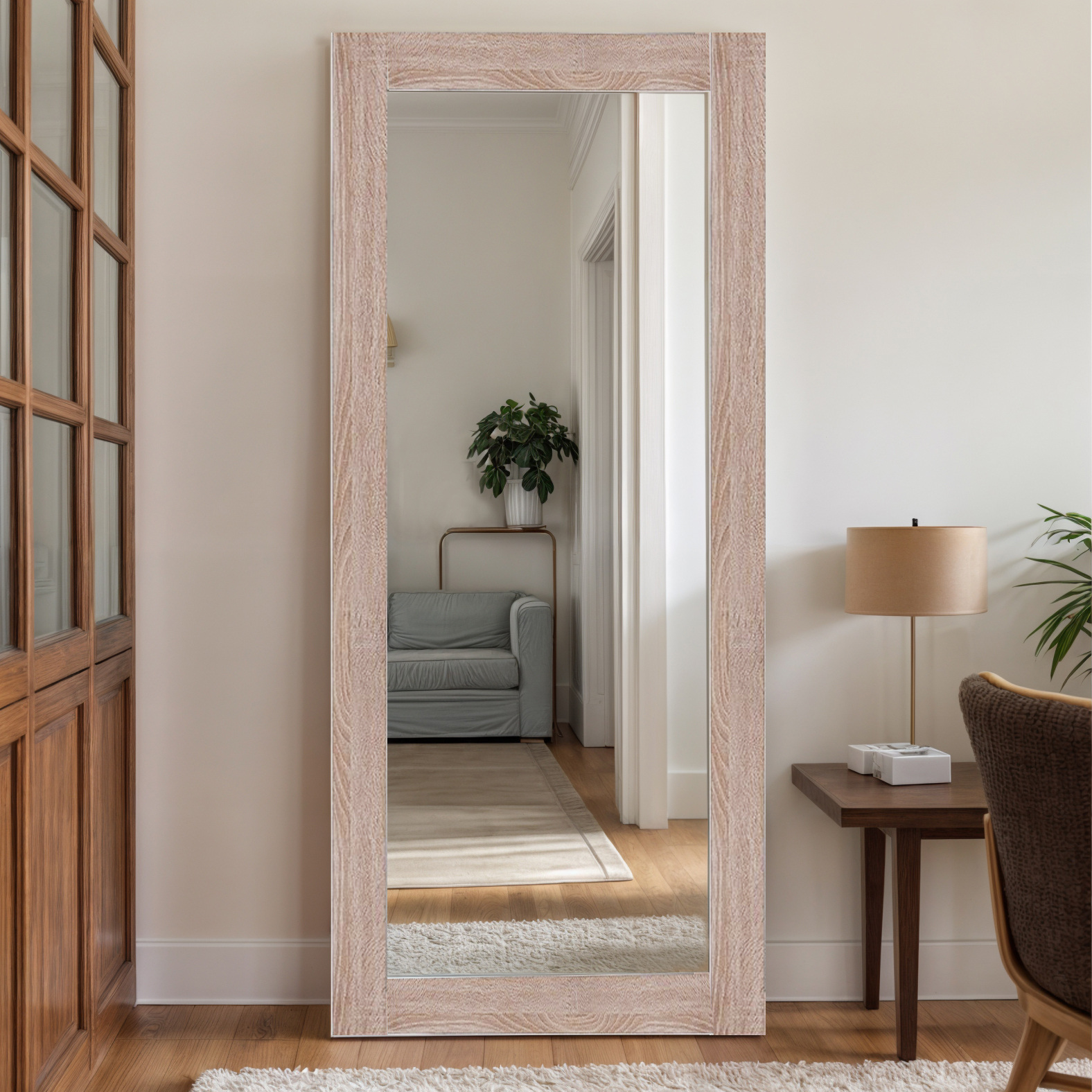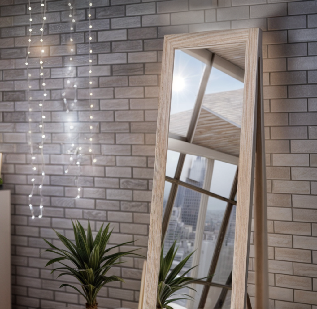 Підлогове або настінне кріплення: завдяки спеціальному упору з ЛДСП дзеркало можна поставити на підлогу у будь-якому куточку кімнати. Також є варіант кріплення до стіни.